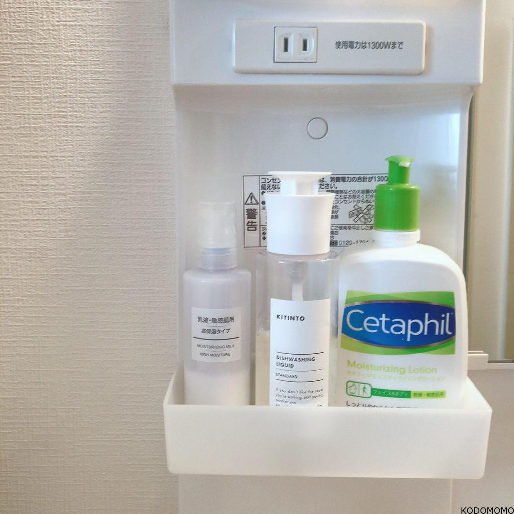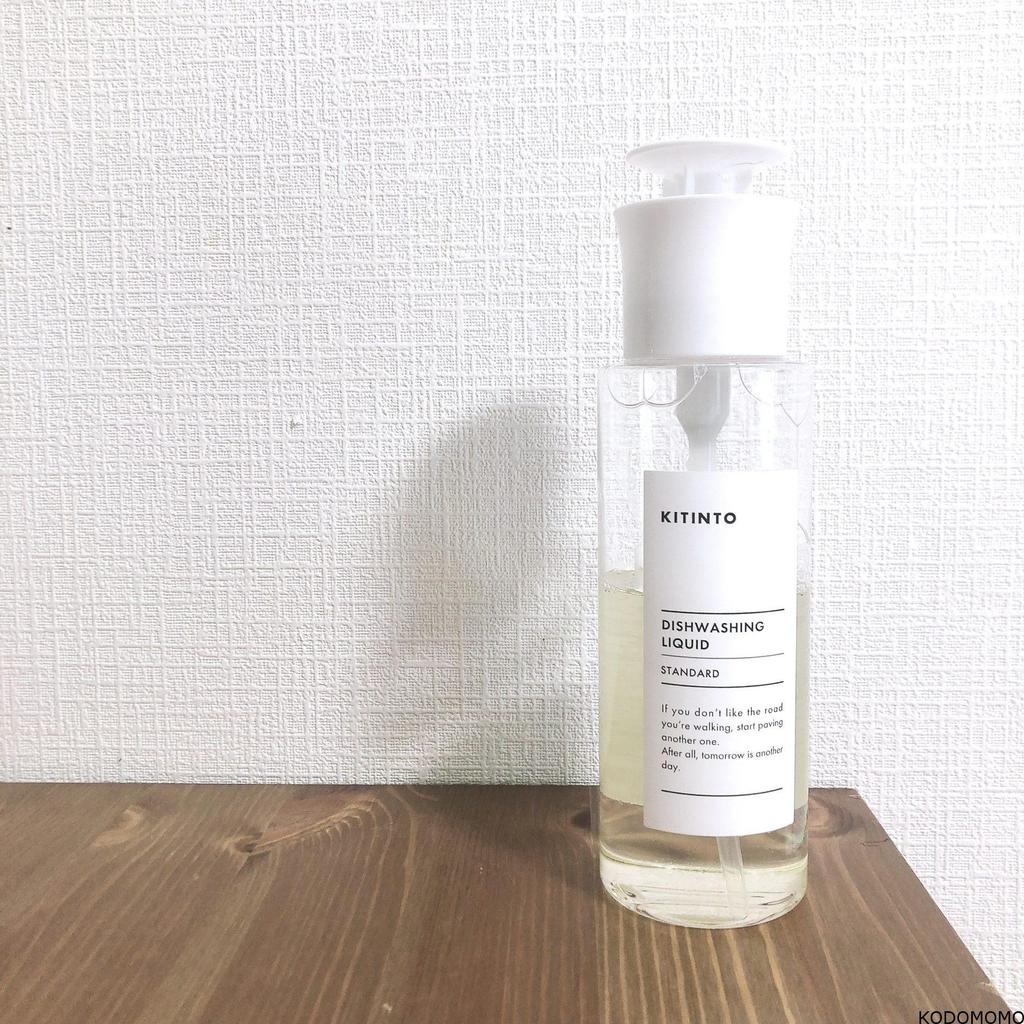 3COINSの#食器洗剤ボトルはSNSで大人気で白いボトルがキッチンのインテリアに馴染み、高評価。