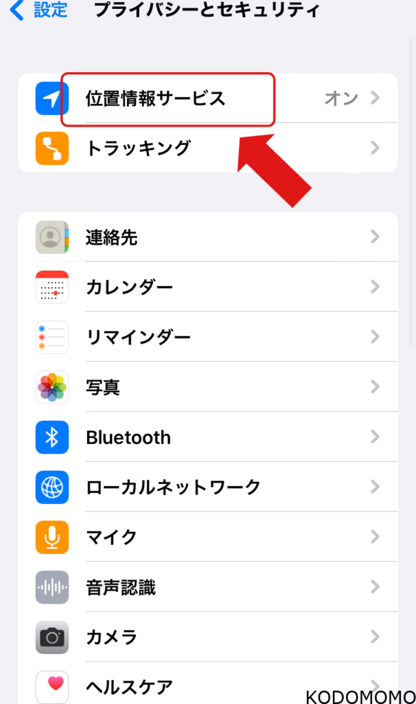 まず設定を開き、プライバシーとセキュリティをタップ。