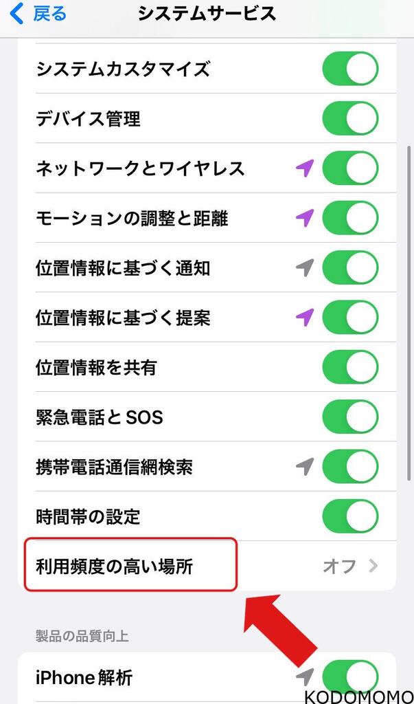 【利用頻度の高い場所】を見られたくない人はすぐ、利用頻度の高い場所を【オフ】にしとくと良いかも。